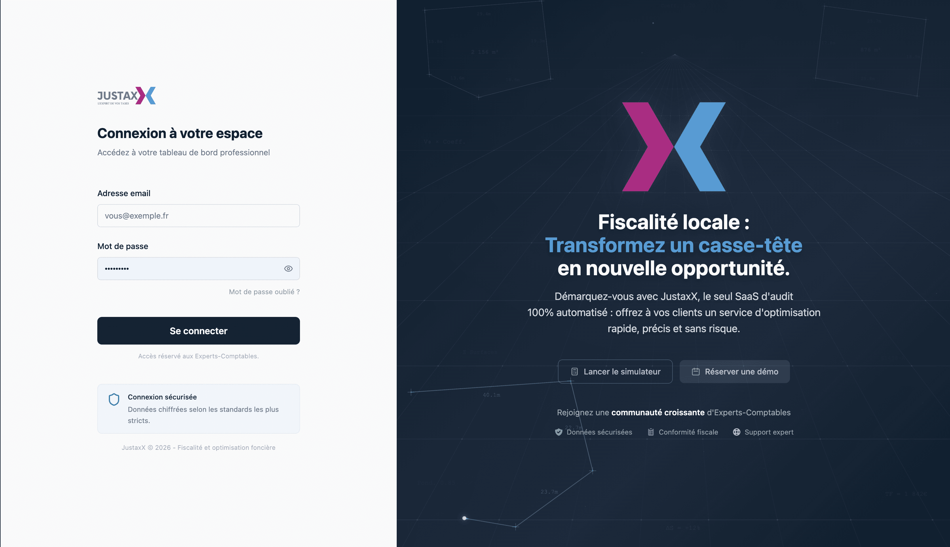 Démarquez-vous avec JustaxX, le seul SaaS d'audit 100% automatisé : offrez à vos clients un service d'optimisation rapide, précis et sans risque, sans expertise spécifique requise.
